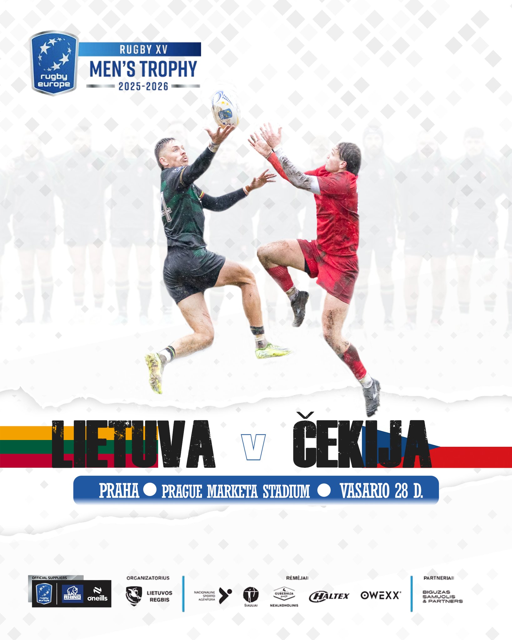 | 128 | 2026.02.28 | Praha | Čekija-Lietuva 87-5 | protokolas - plakatas | (29) - (56) | 0,00 | 1000 | Ivan Zelič (Kroatija) | Rugby Europe Trophy |